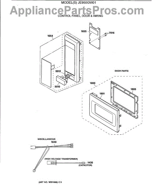 Parts for Ge JE950GW01: 02 - Control Panel, Door & Wiring Parts