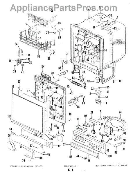 Parts for Magic Chef DU95A-02: 01 - Control Panel, Door, Rack, Det.Cup & Tub Parts