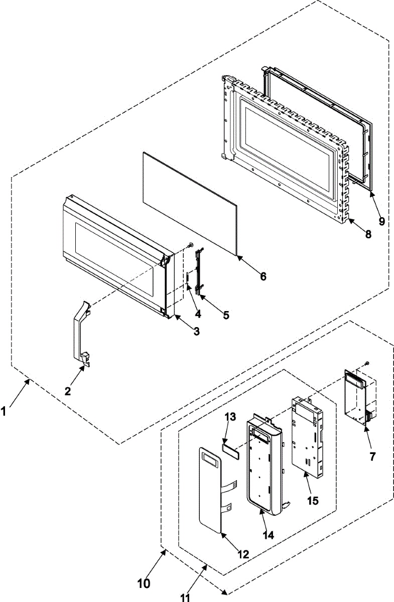 Complete door assembly for microwave ovens. Replaces cracked, damaged, or broken doors that no longer close securely. Includes frame and glass panel.