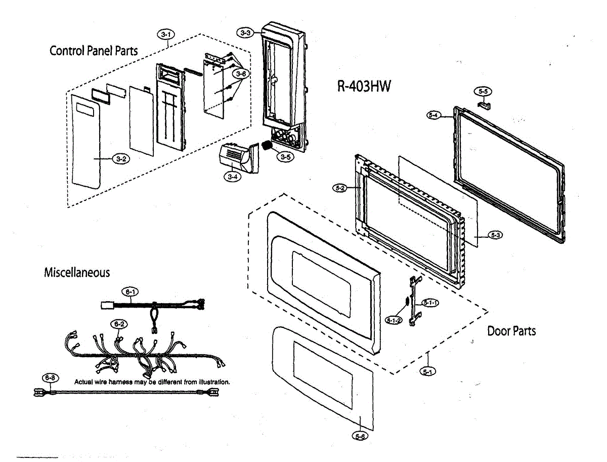 Parts for Sharp R-403HW: Control Panel / Door Parts / Miscellaneous Parts