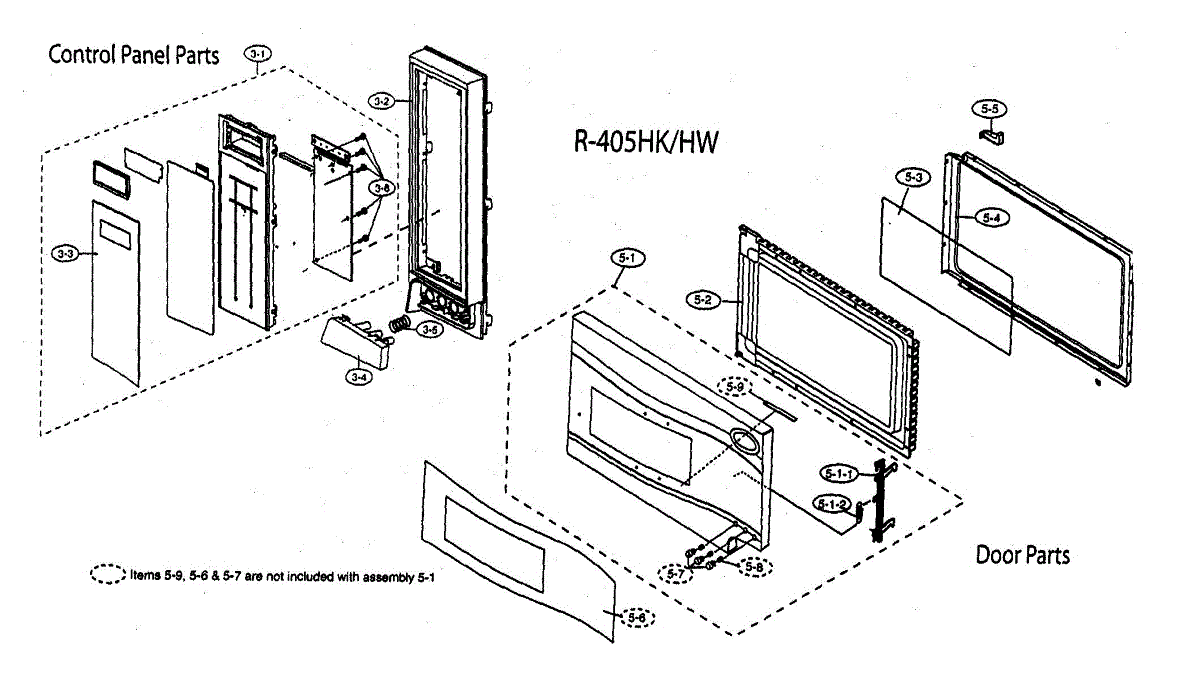 Parts for Sharp R-405HW: Control Panel / Door Parts