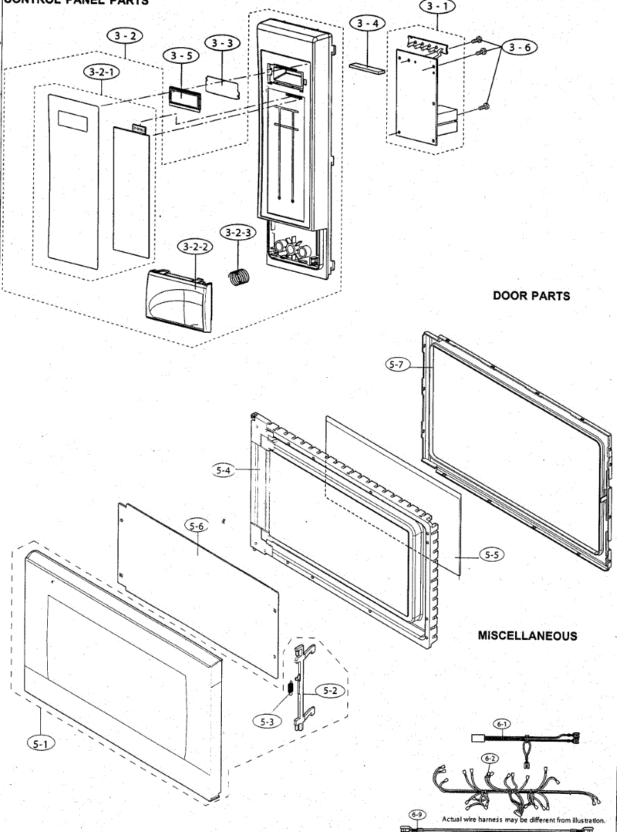 Parts for Sharp R-501FW: Control Panel / Door / Miscellaneous Parts