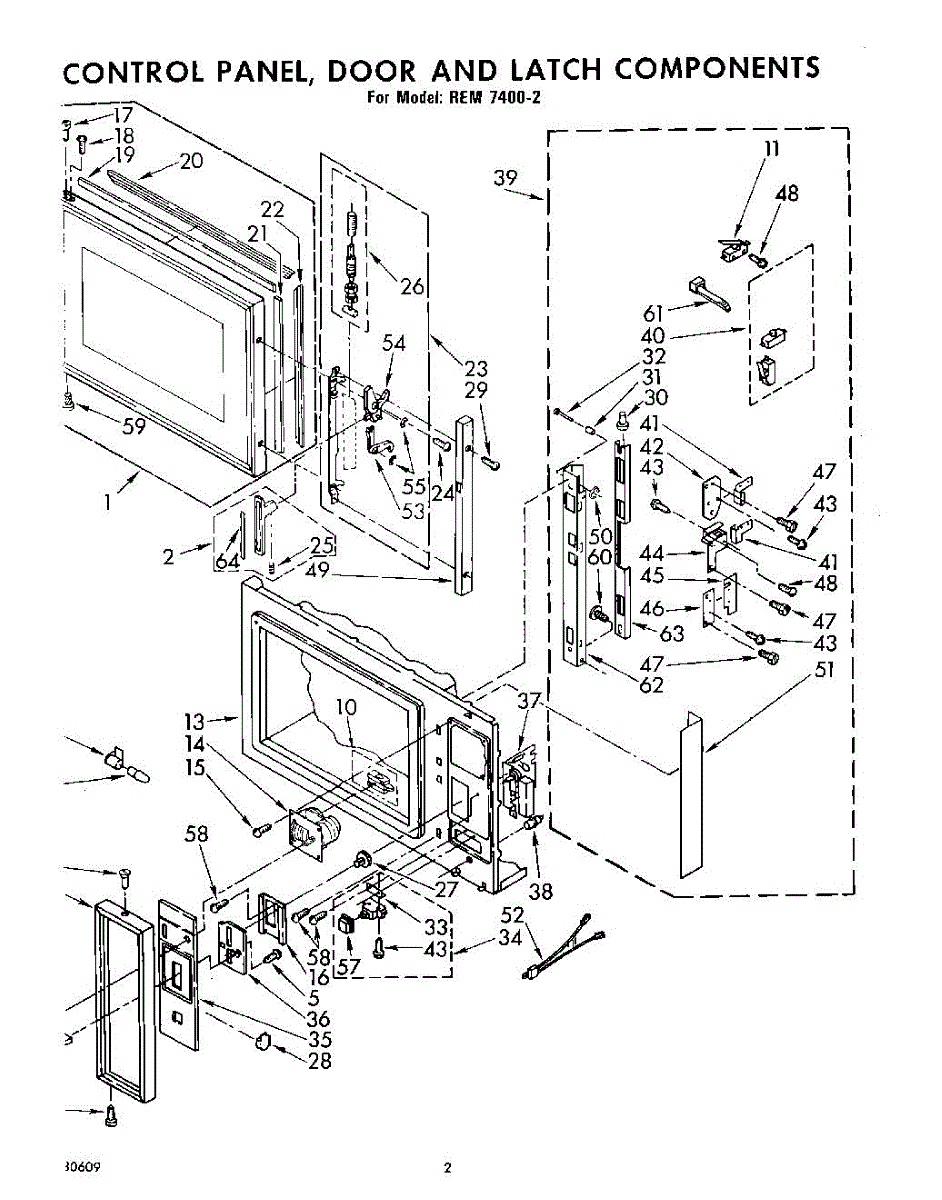 Parts for Whirlpool REM74002: 02 - Control Panel, Door And Latch Parts