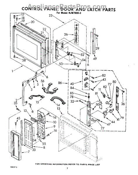 Parts for Whirlpool RJM78000: 02 - Control Panel, Door And Latch Parts