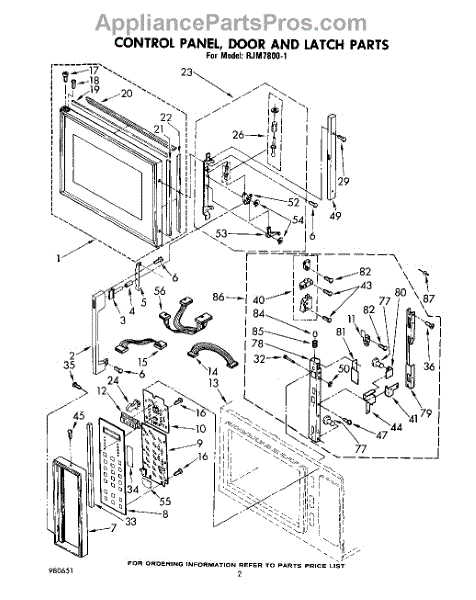 Parts for Whirlpool RJM78001: 02 - Control Panel, Door And Latch Parts