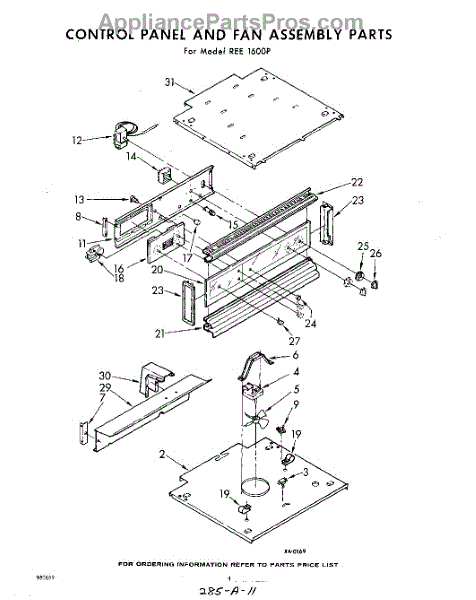Parts for Whirlpool REE1600P: 04 - Control Panel And Fan Assembly Parts