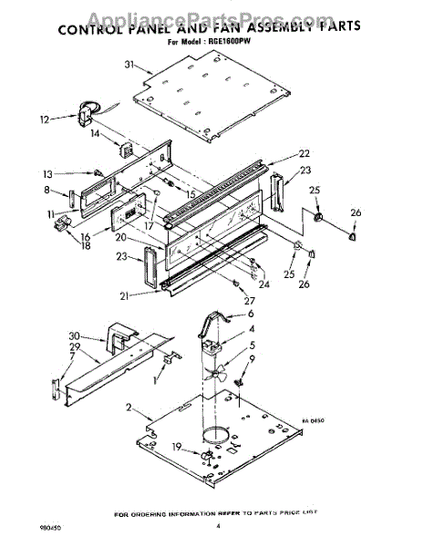 Parts for Whirlpool RGE1600PW: 04 - Control Panel And Fan Assembly Parts