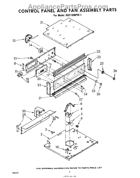 Parts for Whirlpool RGE1600PW1: 04 - Control Panel And Fan Assembly Parts