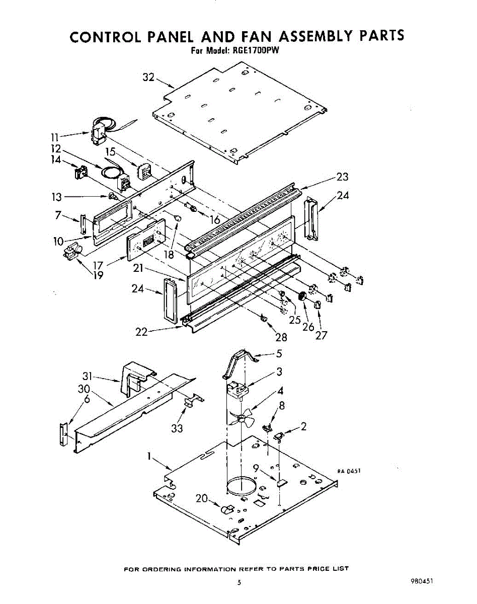 Parts for Whirlpool RGE1700PW: 05 - Control Panel And Fan Assembly Parts