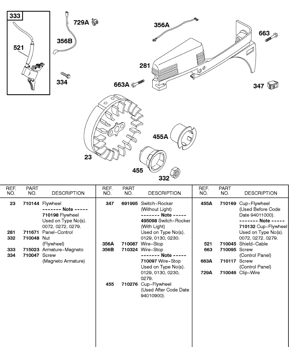 Parts for Briggs & Stratton 085432-0800-E1: Control Panel, Flywheel, Ignition Parts