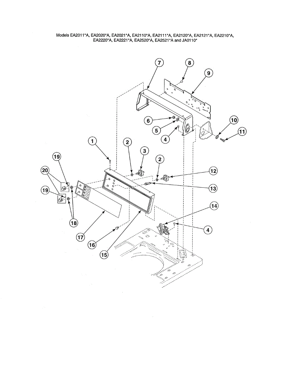 Parts for Alliance EA2710LA: Control Panel & Hood / Controls Parts