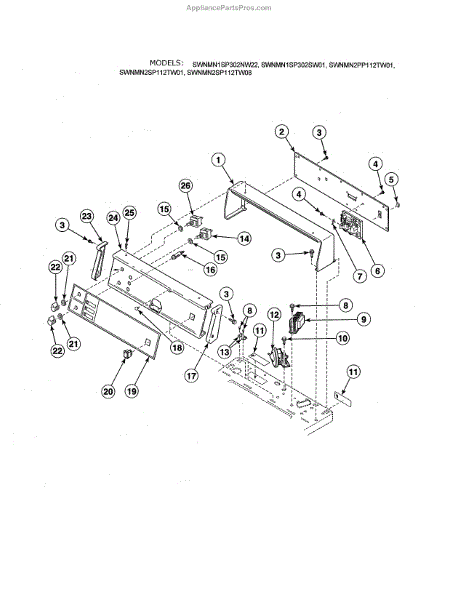 Parts for Alliance SWNBX2SP302AW01: Control Panel & Hood / Controls Parts