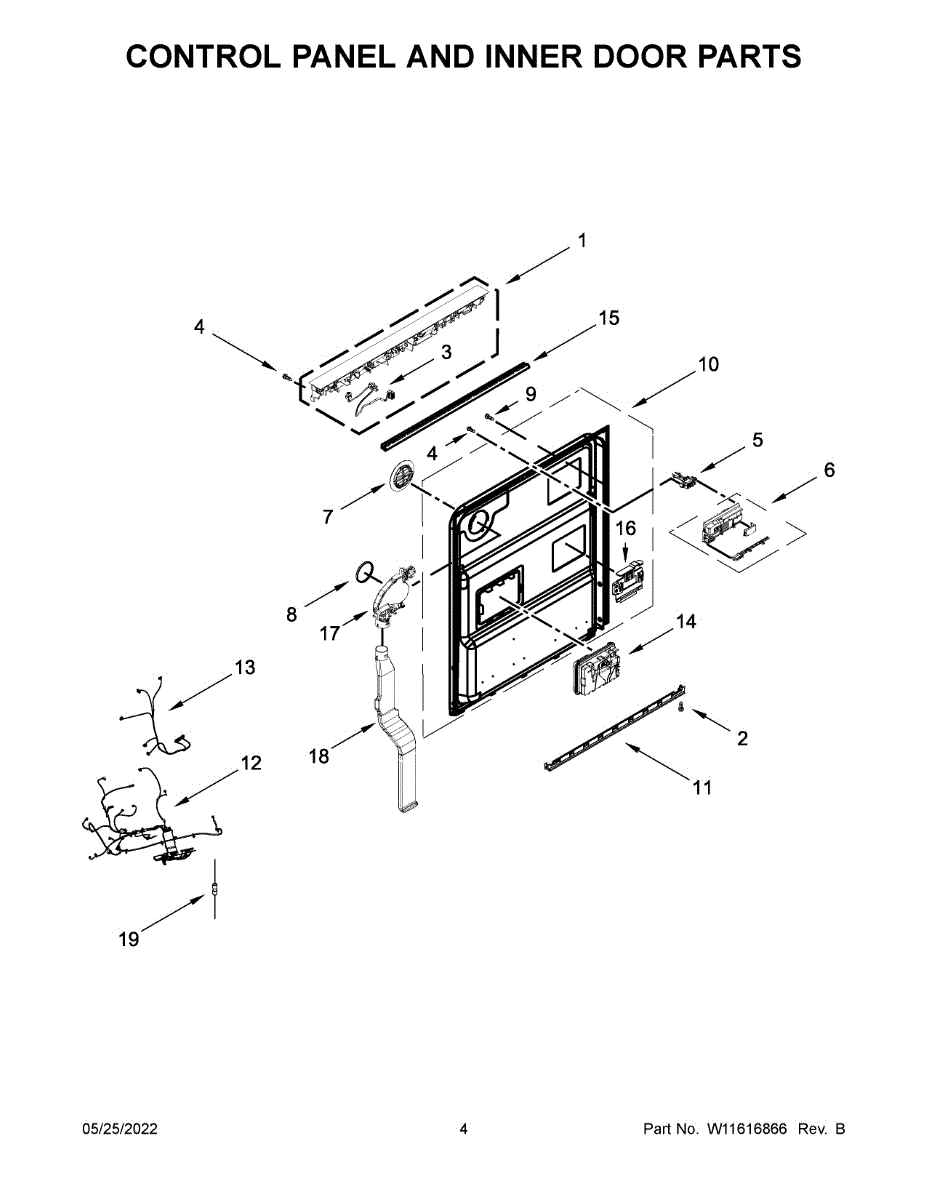 Fix dishwasher dispenser, vent, or door switch issues with this inner door wiring harness. Restores electrical connections inside the door assembly.