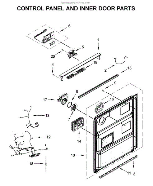 Parts for Whirlpool WDT750SAKV0: Control Panel And Inner Door Parts