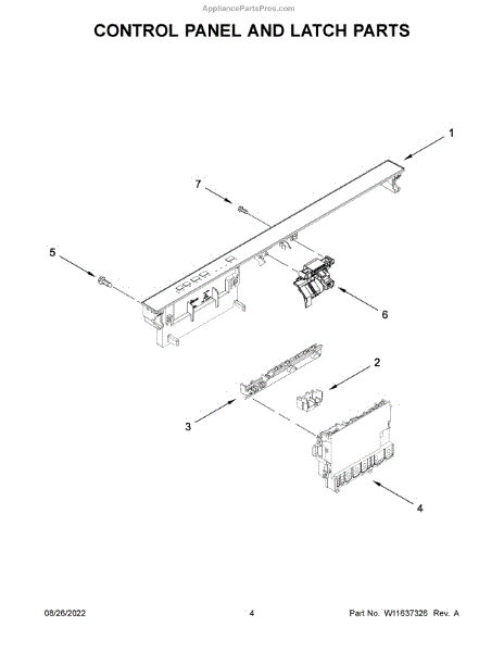 Parts for Whirlpool WDP540HAMB0: Control Panel And Latch Parts