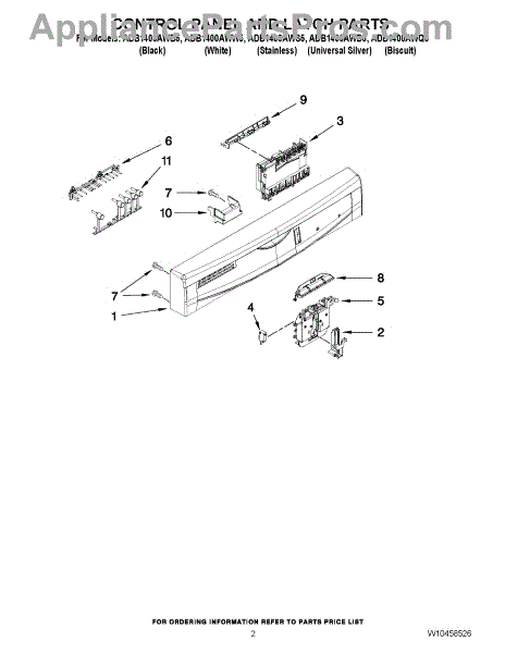 Parts for Amana ADB1400AWD5: 02 - Control Panel And Latch Parts