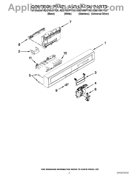 Parts for Amana ADB1400PYB0: 02 - Control Panel And Latch Parts