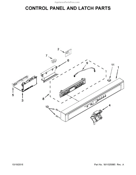 Control panel housing for dishwashers. Protects and mounts the interface components. Replace if cracked, broken, or damaged to restore proper panel fit.