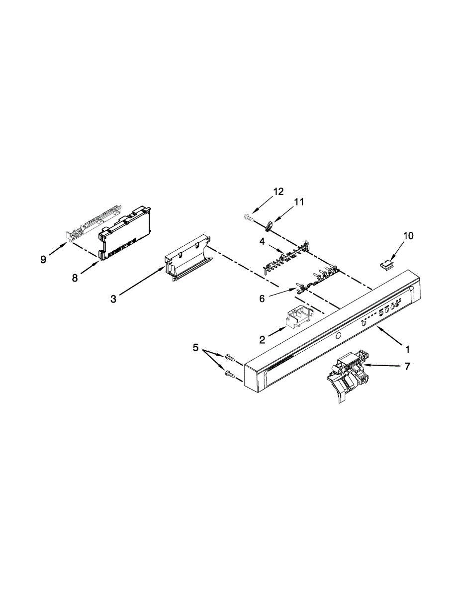 Structural support bracket that secures and stabilizes dishwasher components. Replaces broken, worn, or missing connectors causing loose panels or vibration.