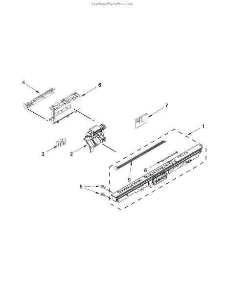 Structural mounting brace for dishwashers. Secures dishwasher to cabinetry. Replace if bent, cracked, or missing to restore proper installation.