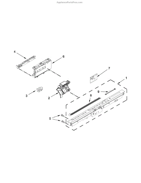 Structural mounting brace for dishwashers. Secures dishwasher to cabinetry. Replace if bent, cracked, or missing to restore proper installation.