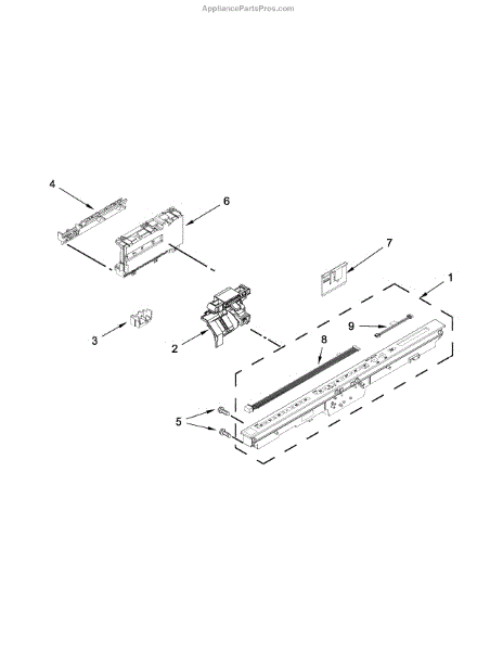 Structural mounting brace for dishwashers. Secures dishwasher to cabinetry. Replace if bent, cracked, or missing to restore proper installation.