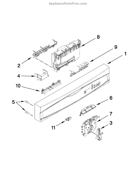 This console assembly is the outer control panel housing that holds and protects the appliance's control buttons, touchpad, and display—restoring a secure, finished surface for normal operation and user access. What it does