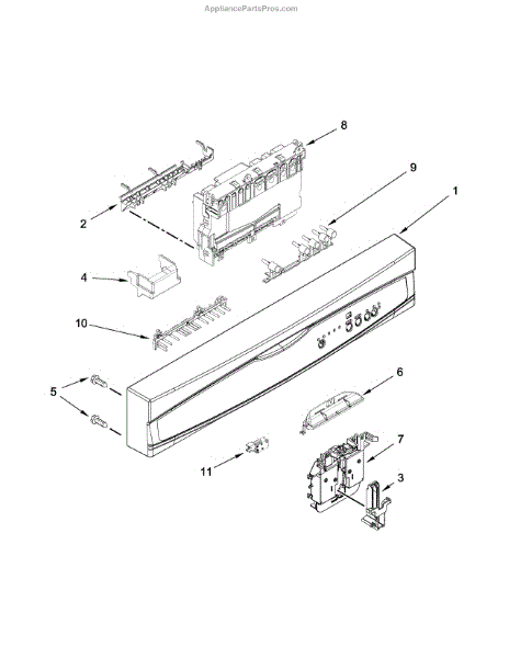 Structural support bracket that secures and stabilizes dishwasher components. Replaces broken, worn, or missing connectors causing loose panels or vibration.