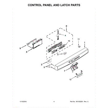 This UI housing is the outer bezel that holds and protects the appliance's user interface and control components, restoring a finished look and secure mounting for the control board and buttons. What it does: