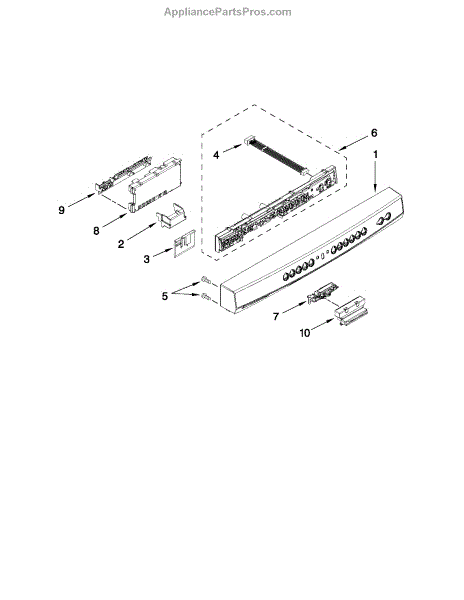 Replaces cracked or damaged dishwasher control panel housing. Protects user interface and provides secure mounting for buttons and display.