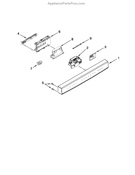 Control console for your dishwasher. Mounts on the door panel and houses the buttons and display. Replace if buttons are unresponsive or cracked.
