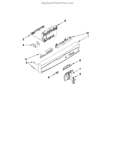 Structural support bracket that secures and stabilizes dishwasher components. Replaces broken, worn, or missing connectors causing loose panels or vibration.