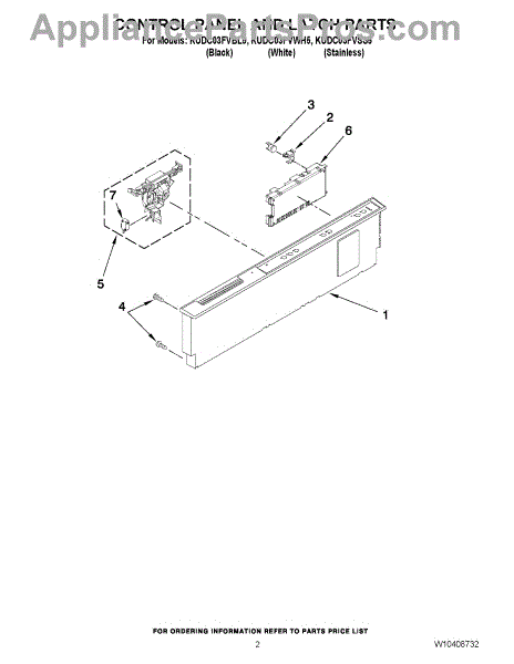 Parts for Kitchenaid KUDC03FVSS5: 02 - Control Panel And Latch Parts