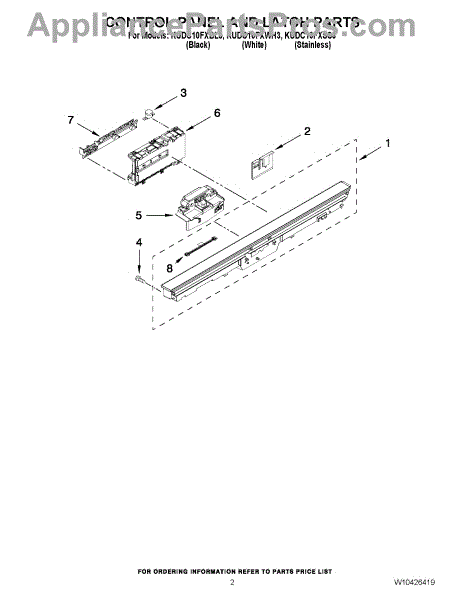 Parts for Kitchenaid KUDC10FXSS3: 02 - Control Panel And Latch Parts