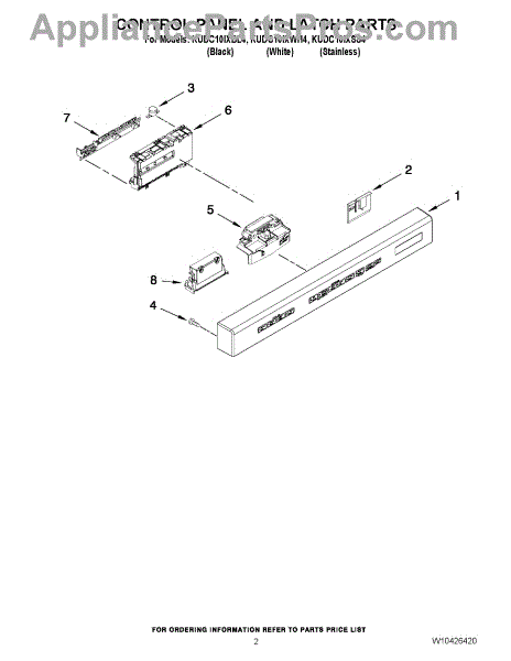 Parts for Kitchenaid KUDC10IXBL4: 02 - Control Panel And Latch Parts