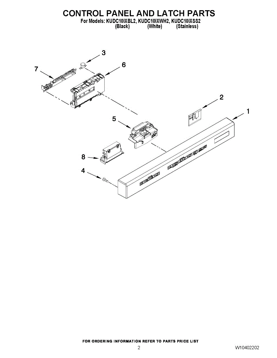 Parts for Kitchenaid KUDC10IXSS2: 02 - Control Panel And Latch Parts