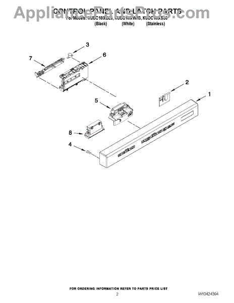 Parts for Kitchenaid KUDC10IXSS3: 02 - Control Panel And Latch Parts