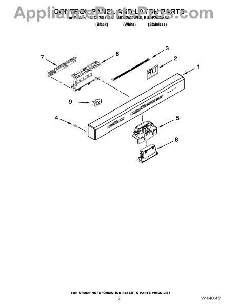 Parts for Kitchenaid KUDE20IXSS6: 02 - Control Panel And Latch Parts
