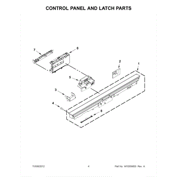 The Door Latch Assembly is an OEM part for Whirlpool dishwashers. It ensures a secure latch and seal for the dishwasher door during operation.