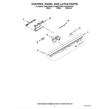 Parts for Kitchenaid KUDE48FXSS4: 02 - Control Panel And Latch Parts