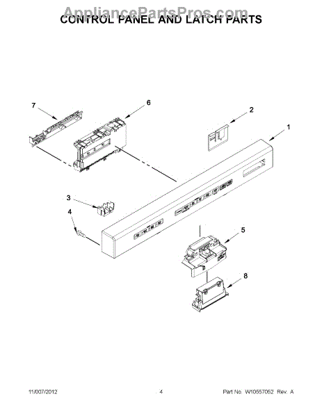The Door Latch Assembly is an OEM part for Whirlpool dishwashers. It ensures a secure latch and seal for the dishwasher door during operation.