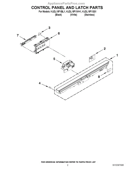 Parts for Kitchenaid KUDL15FXBL1: 02 - Control Panel And Latch Parts