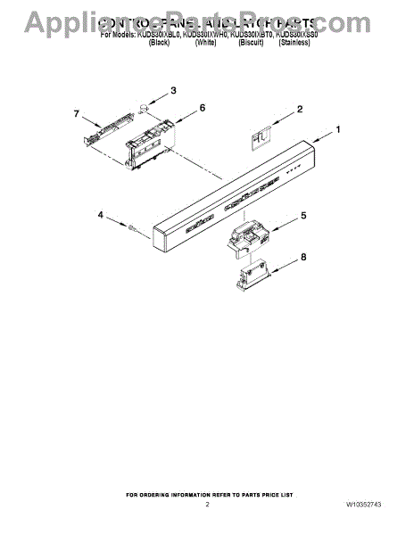Replaces cracked, broken, or loose dishwasher control panel touch pad. Installs on door front. Needed when panel won't snap together properly.