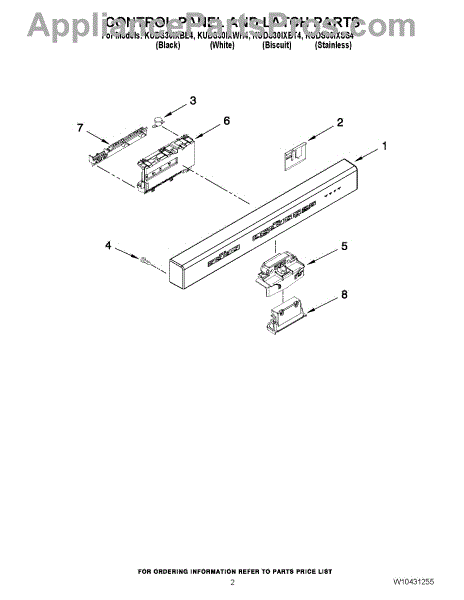 Parts for Kitchenaid KUDS30IXSS4: 02 - Control Panel And Latch Parts