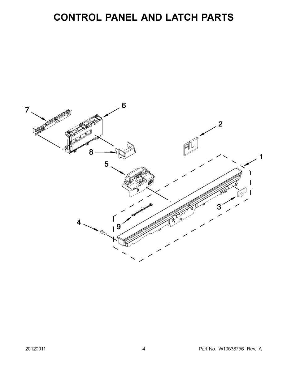 Parts for Kitchenaid KUDS35FBSS0: 02 - Control Panel And Latch Parts