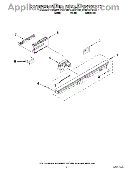 Parts for Kitchenaid KUDS35FXSS8: 02 - Control Panel And Latch Parts