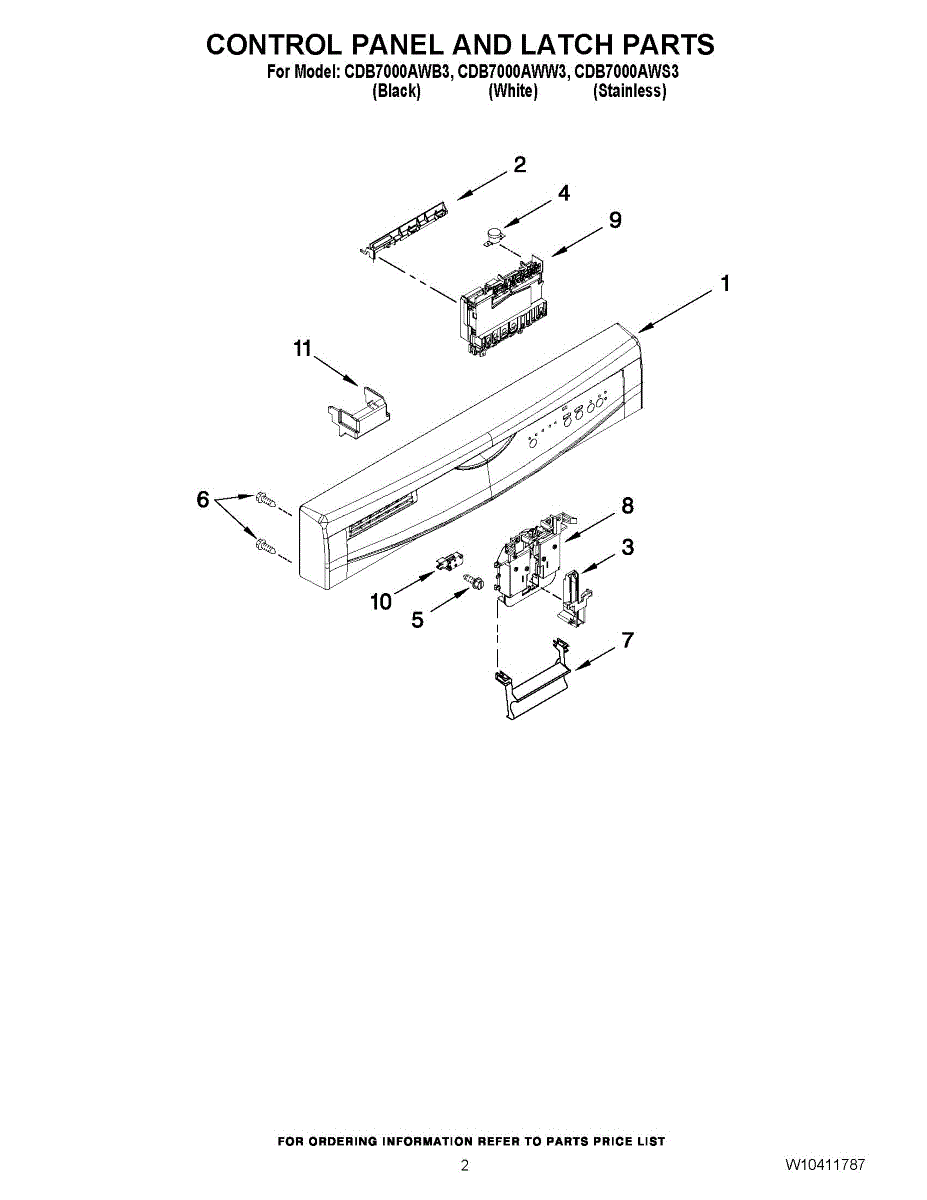 Parts for Magic Chef CDB7000AWB3: 02 - Control Panel And Latch Parts