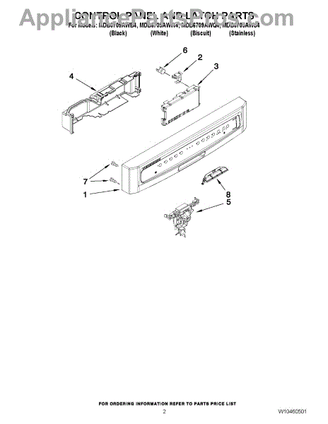 Replacement door latch assembly for dishwashers. It locks the door and signals the control when closed so cycles can start and run without interruption. A worn latch can cause no-start conditions or intermittent stopping. What it does: