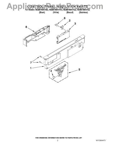 Parts for Maytag MDB6769AWQ2: 02 - Control Panel And Latch Parts