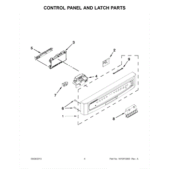 White control panel touch pad for dishwashers. Installs on the door front. Replace if buttons are unresponsive, worn, cracked, or discolored.